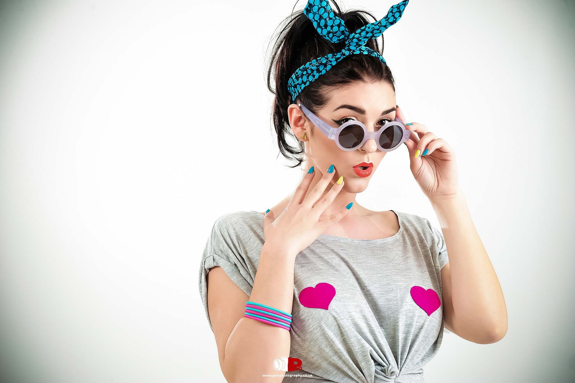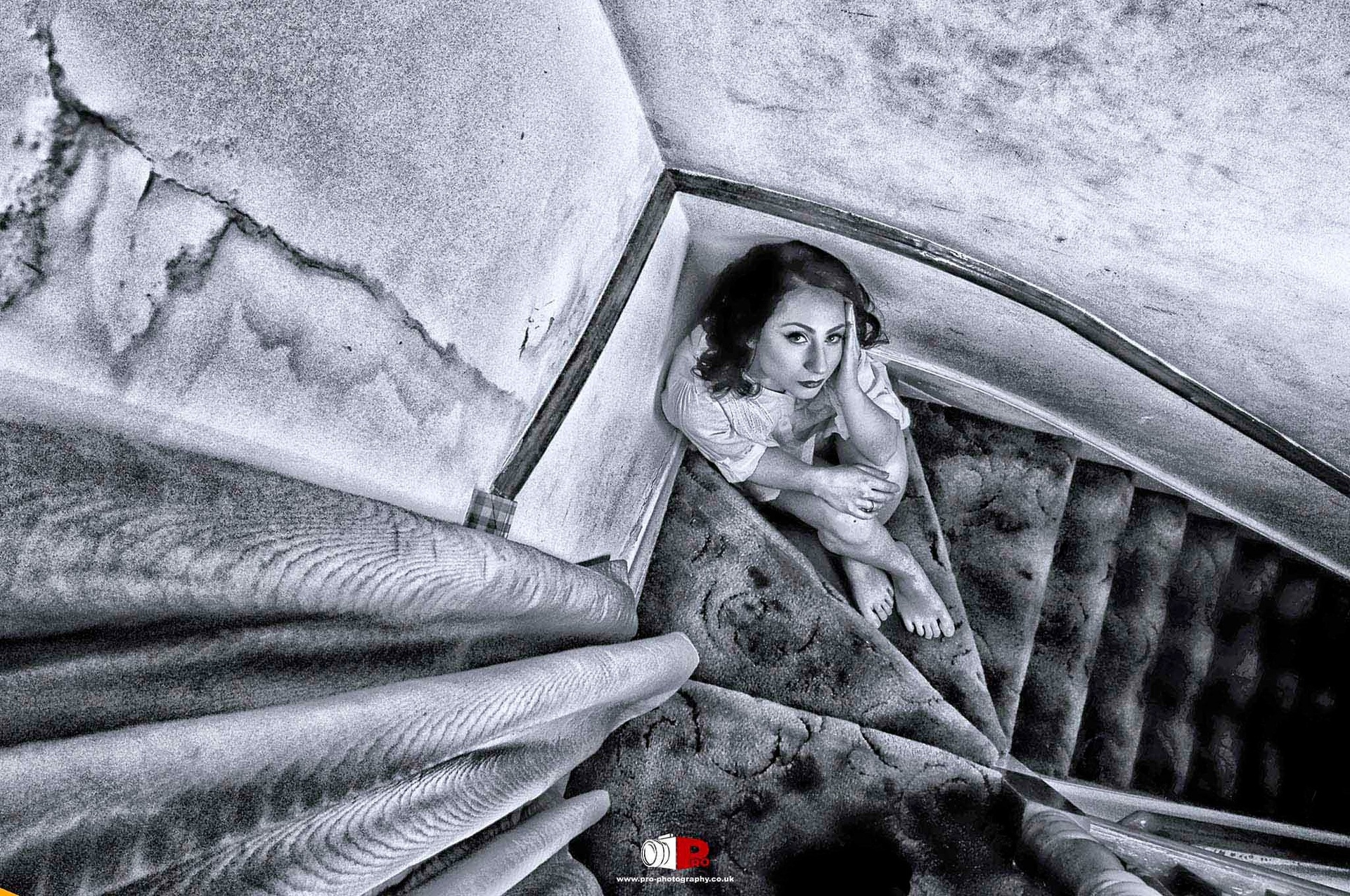 Edgy Woman with Red Hair Posing Under Stormy Sky