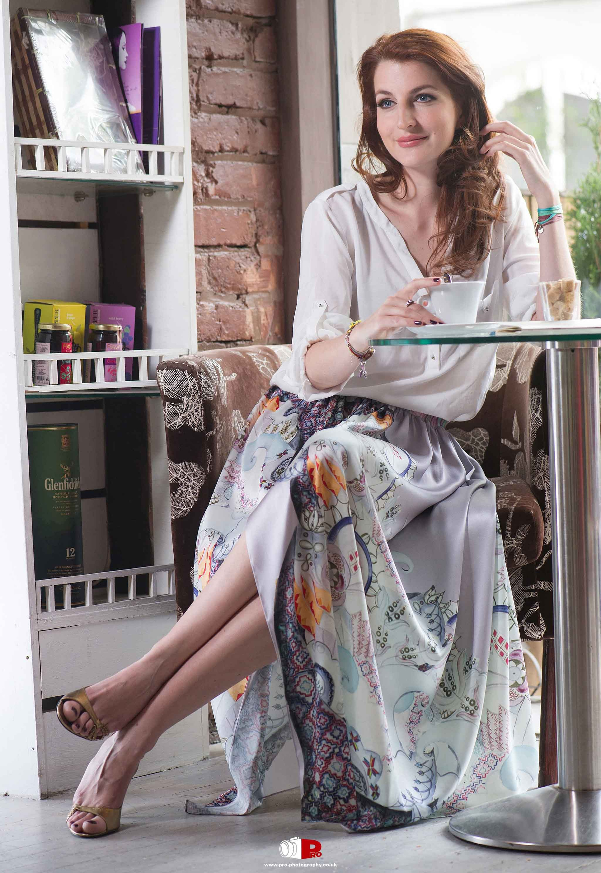 Elegant Woman in Vintage Dress at Outdoor Cafe