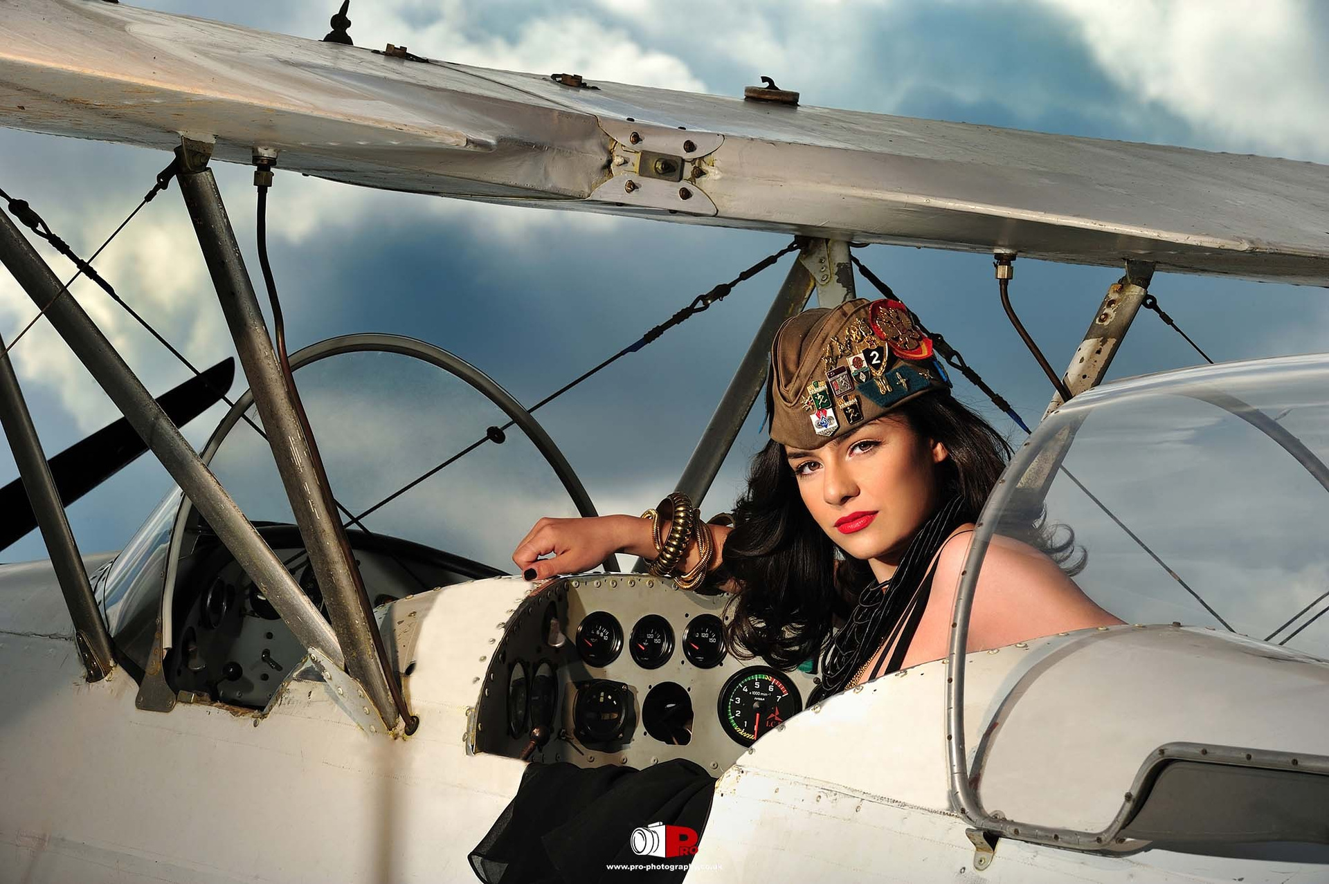 Vintage Aviator-Themed Portrait in Airplane Cockpit